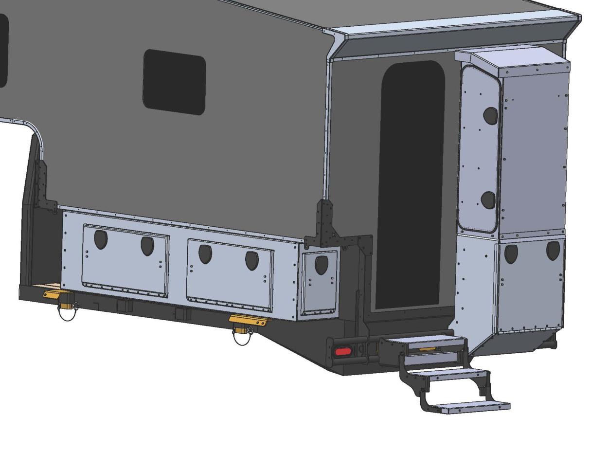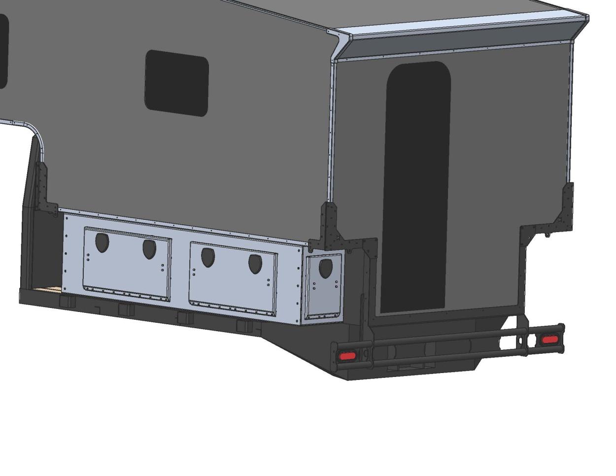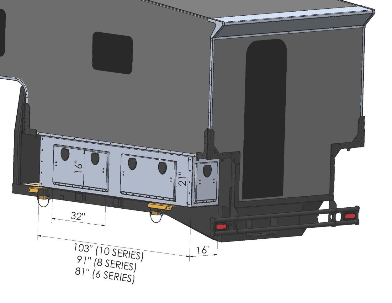 Our flat bed boxes are designed specifically for KRUZR campers. With 2 large side doors and 1 rear door for long items such as skis and fishing poles, you have access to your gear in short order!