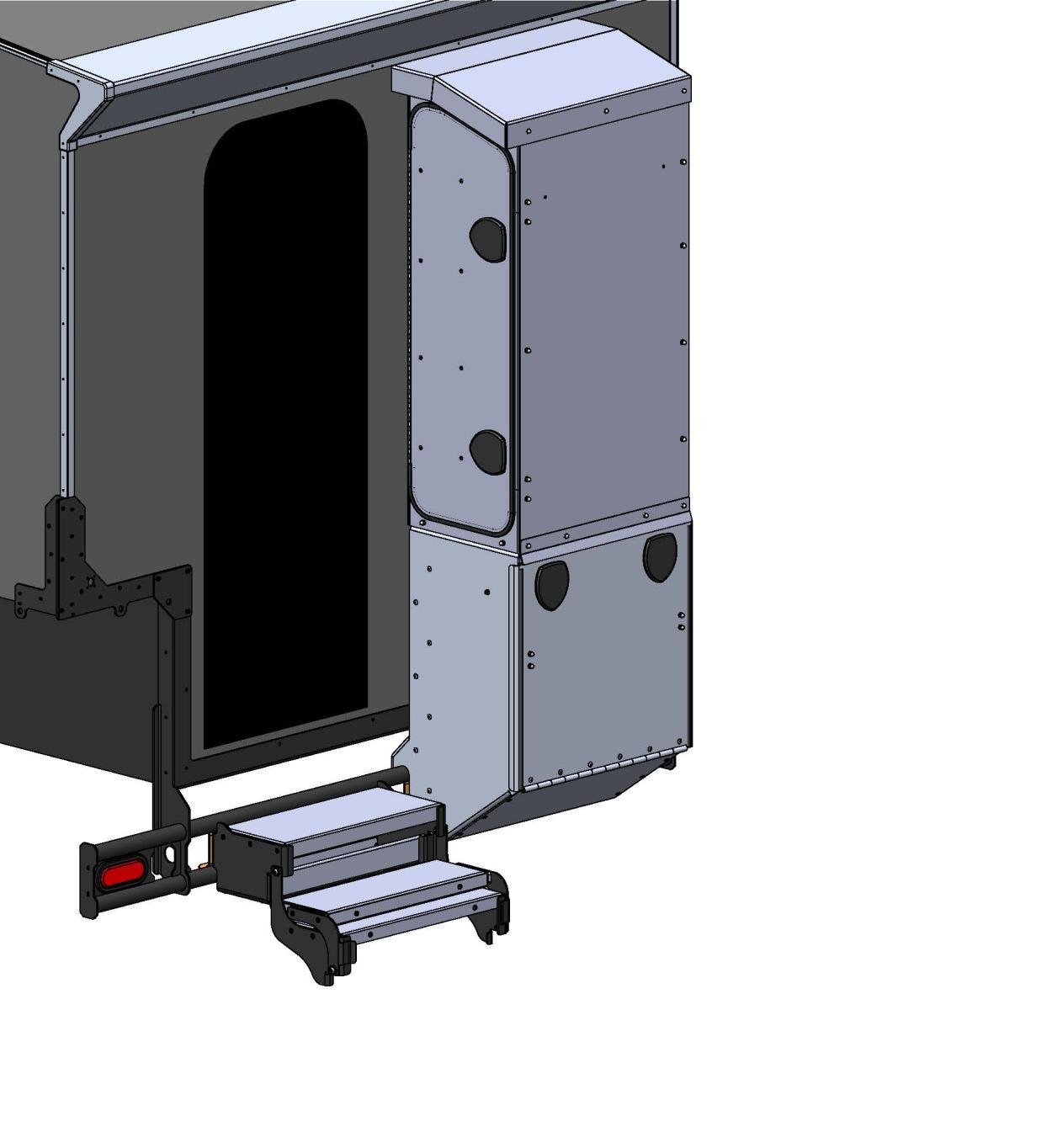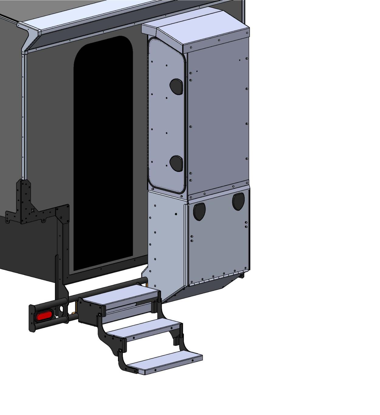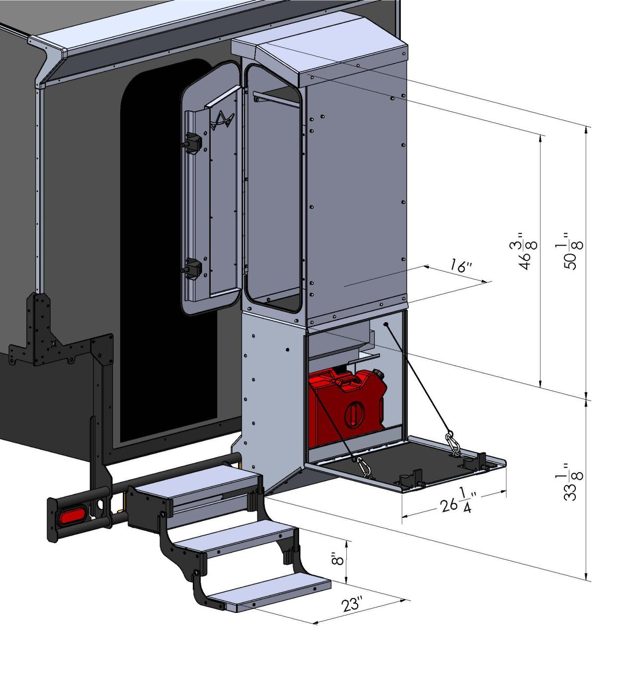 With exceptional ground clearance, the Overland Pack is paired up with the Fold and Go stairs, making this camper accessory a perfect fit for the “off-grid” folks who require a trailer in tow. The Fold and Go stairs are just that, flip them down or fold them up! No pins, latches, etc. Fast, sturdy, and light!
